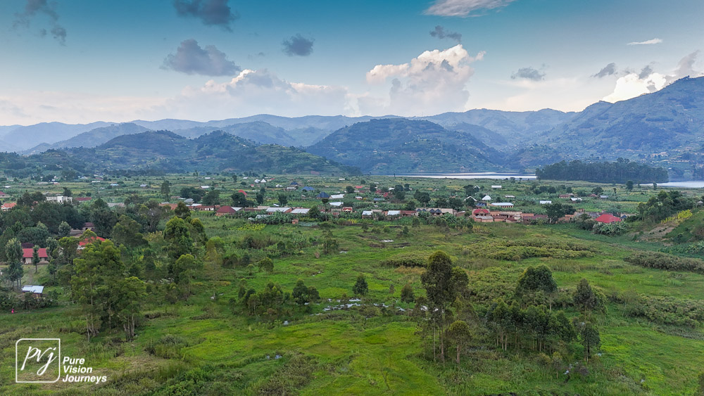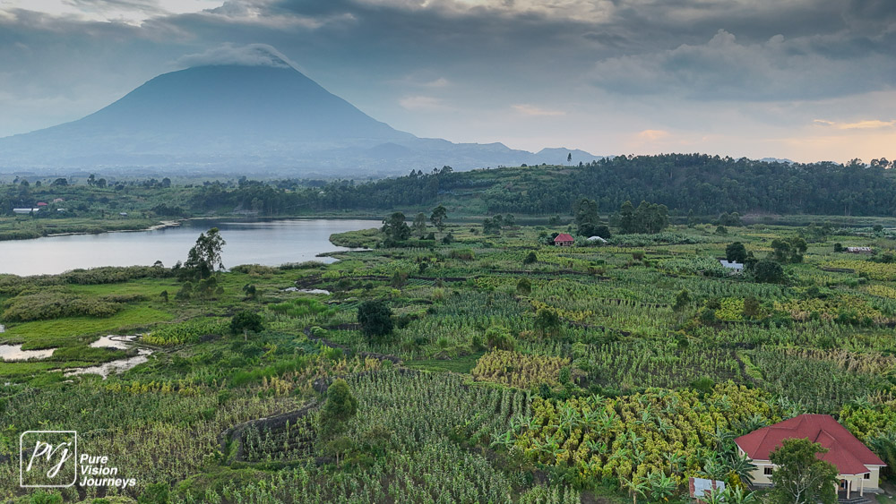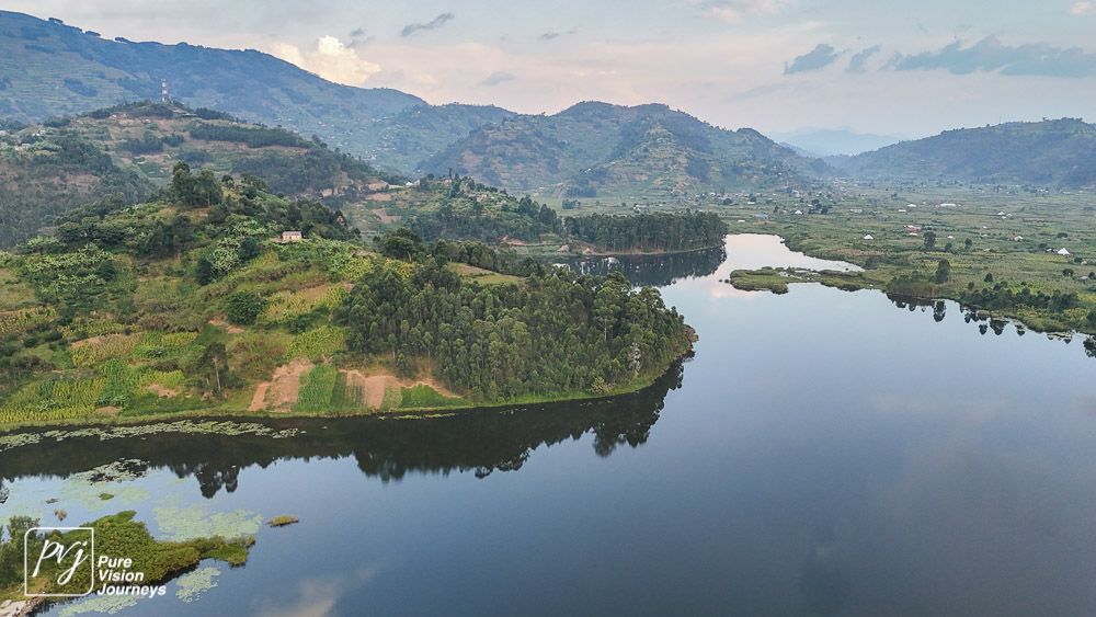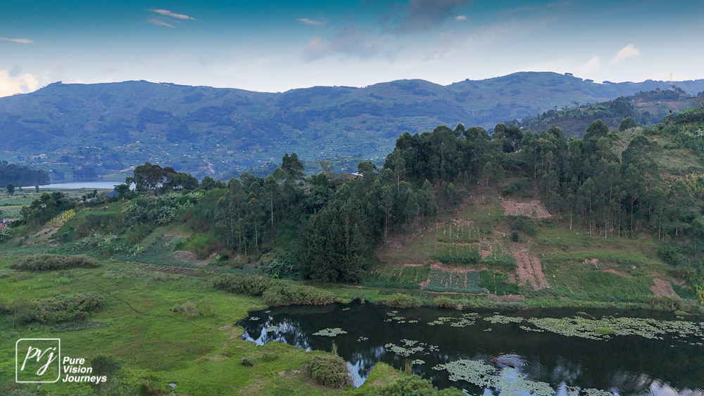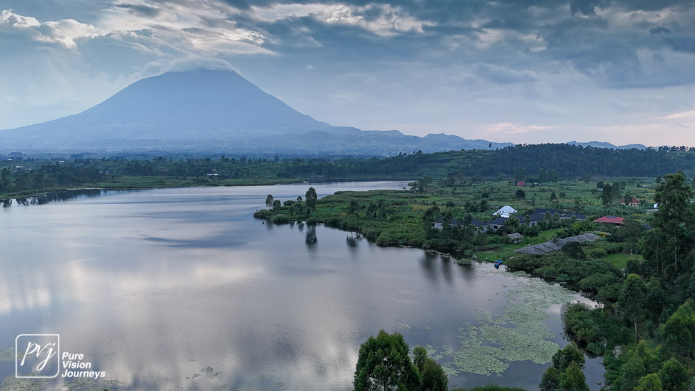Lake Chahafi is a crater lake located in Kisoro district in southwestern Uganda. The scenic view of the lake, the surrounding green landscape and the spectacular Virunga Mountain is breathtaking.