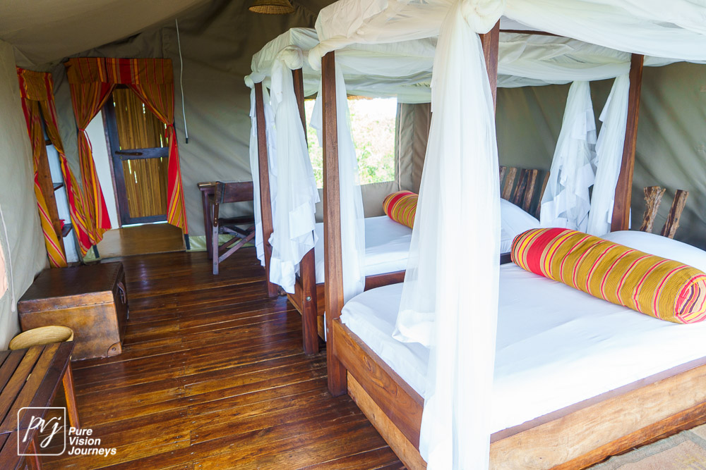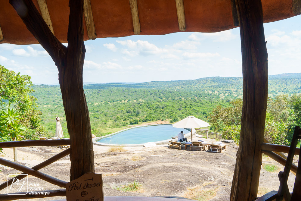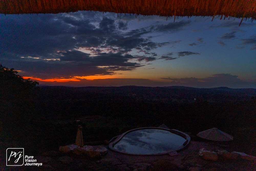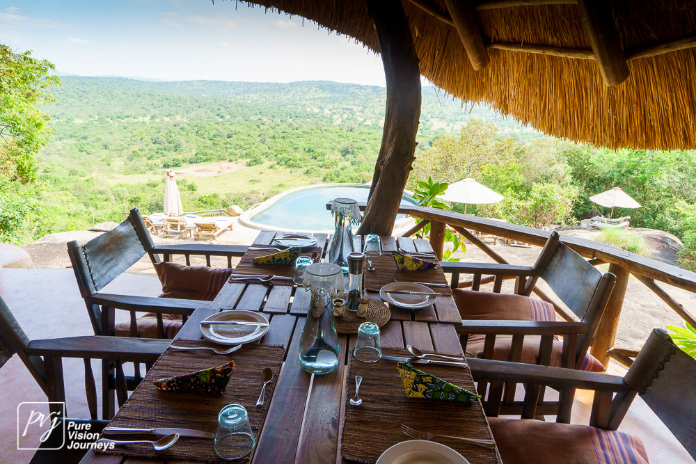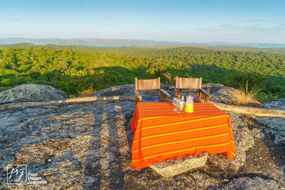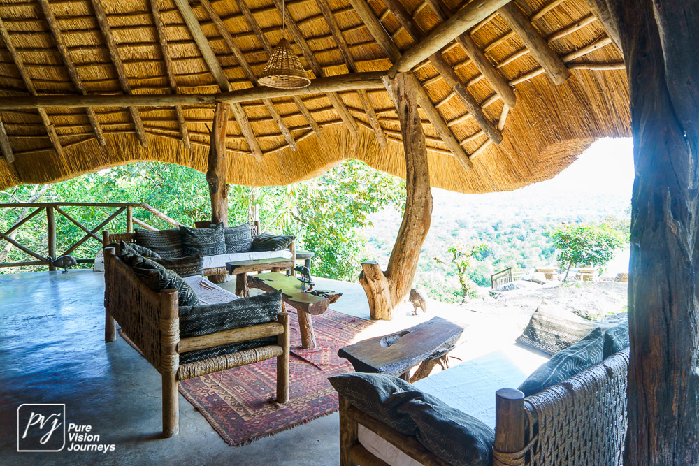 Mihingo Lodge is a luxury-tented safari lodge, set on top of a rocky setting adjacent to Lake Mburo National Park with a spectacular view of a vast landscape. Mihingo Lodge is 240 Km from the city of Kampala in Uganda. The lodge can be reached 22 Km from the main road.