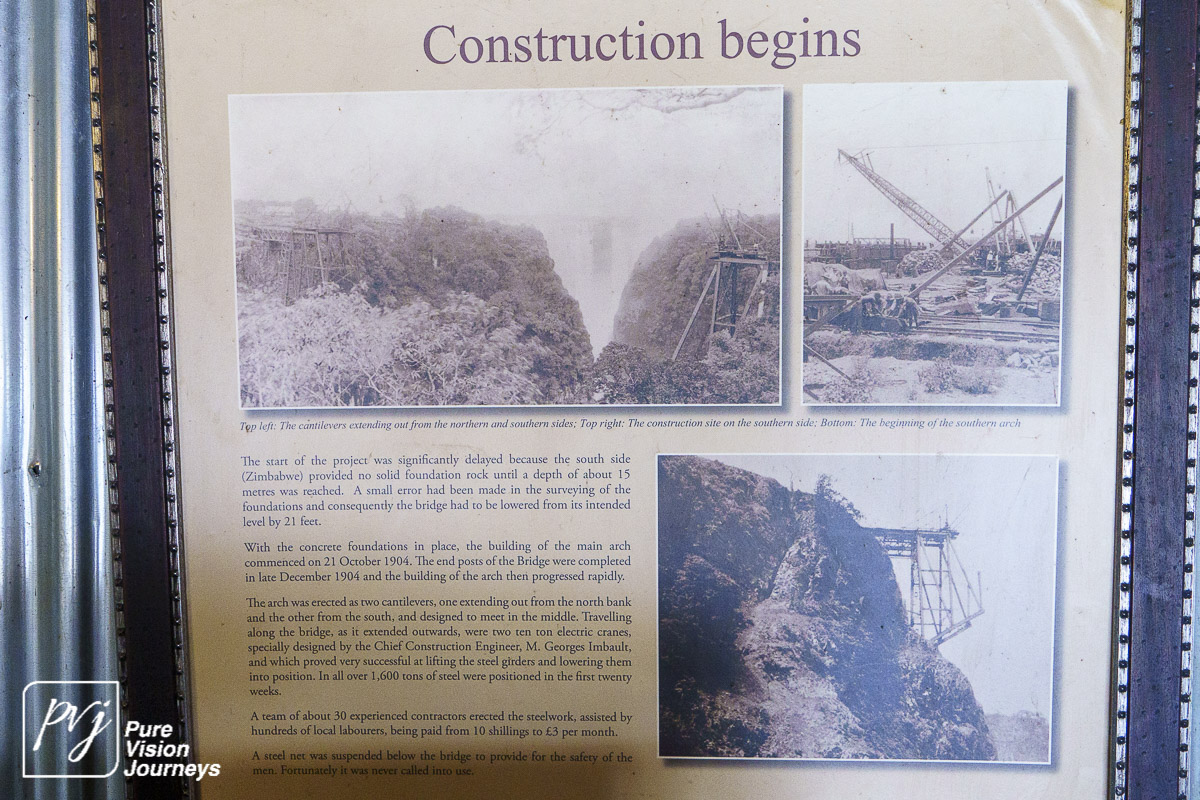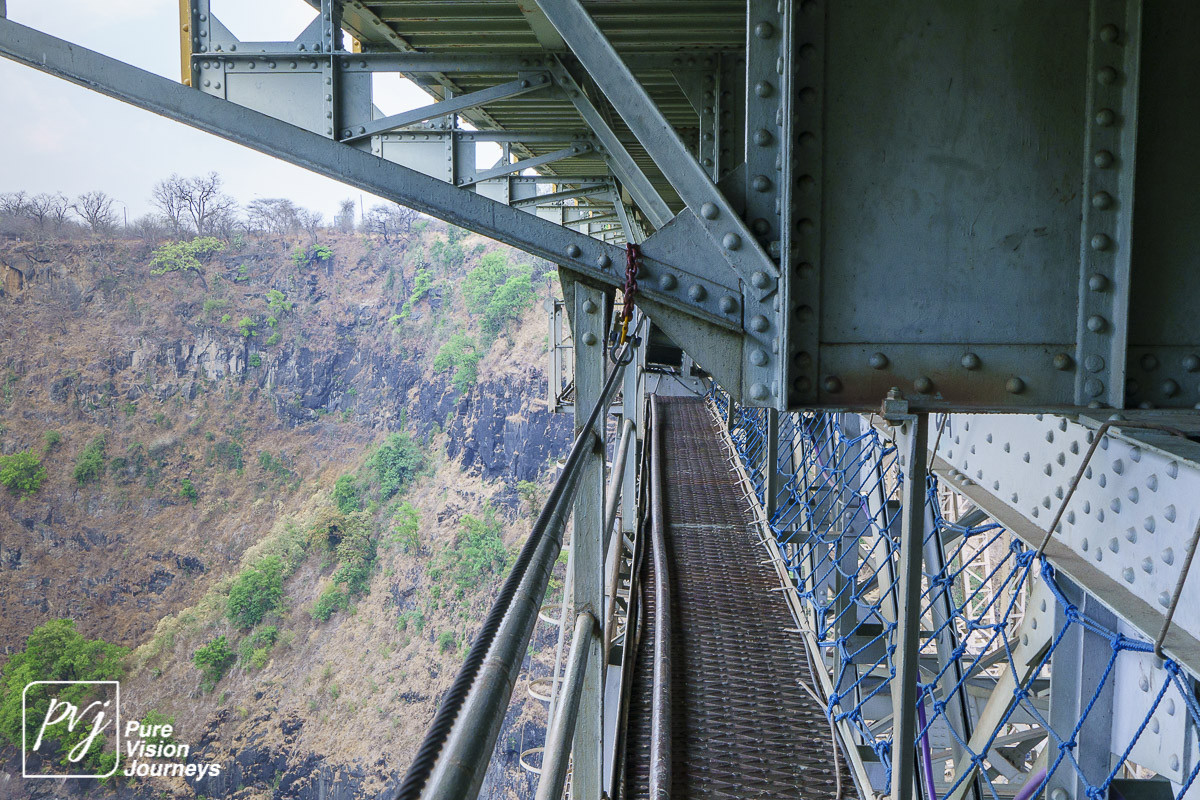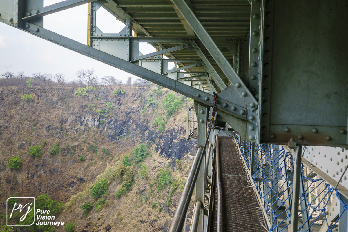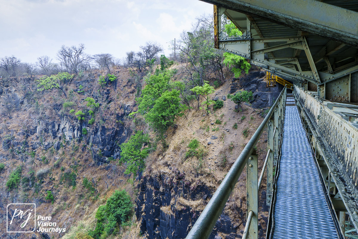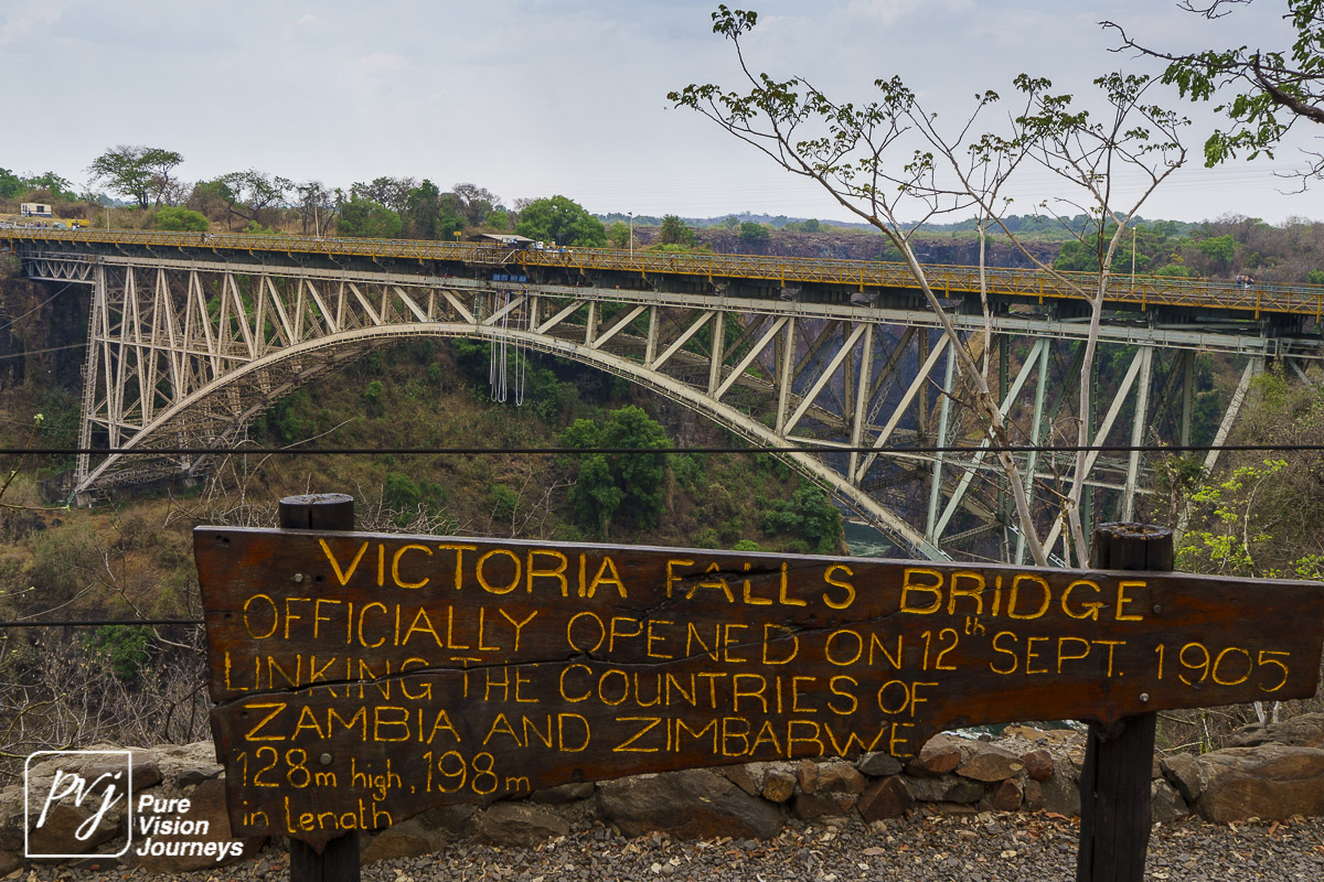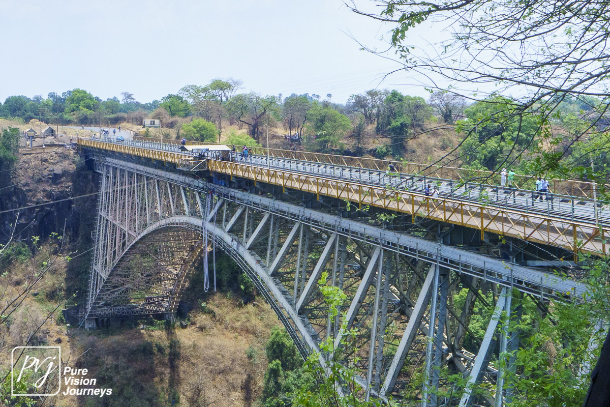 The Victoria Falls Bridge is an iconic construction built over the Zambezi River. The bridge is built over the Second Gorge close to the Falls and connects the two towns of Victoria Falls and Livingstone. The Zambezi River forms as the border between the countries of Zimbabwe and Zambia.