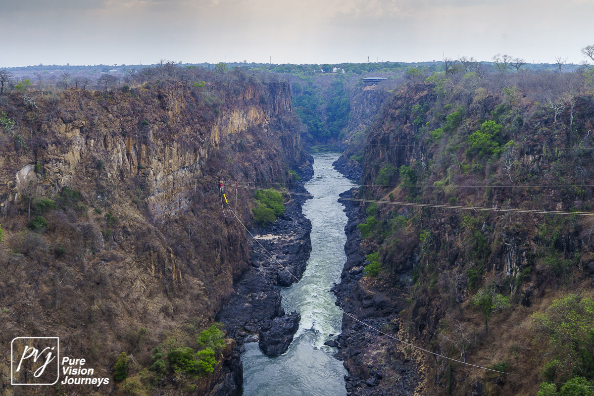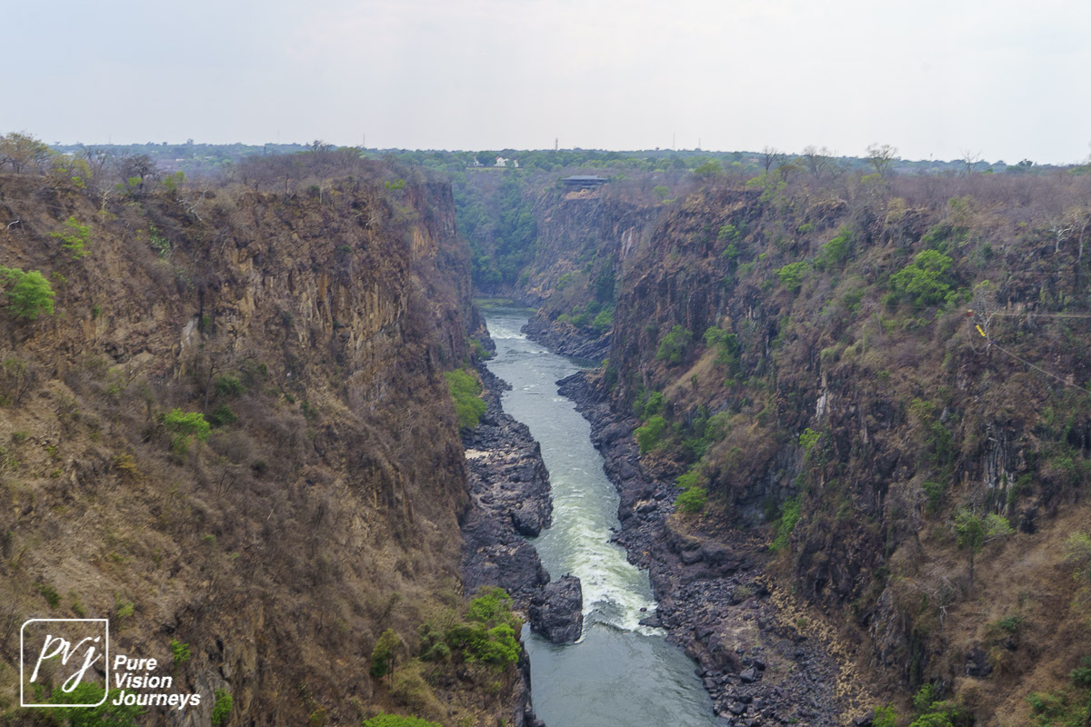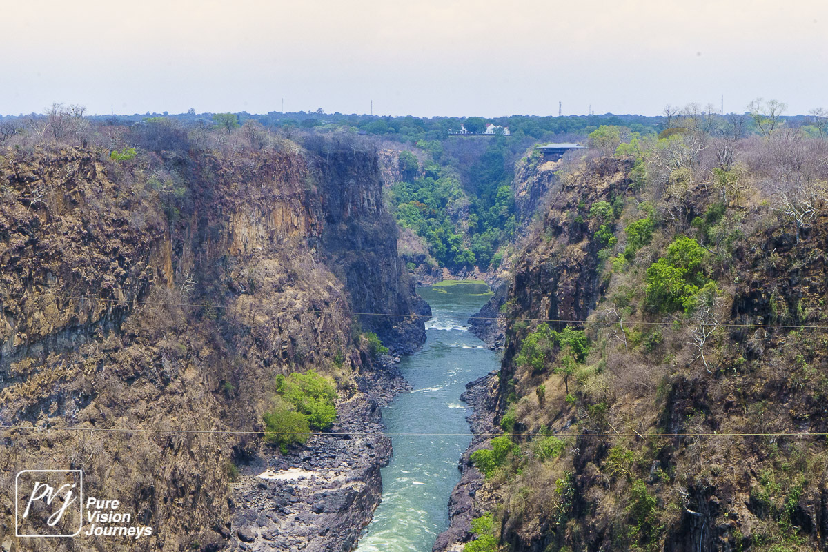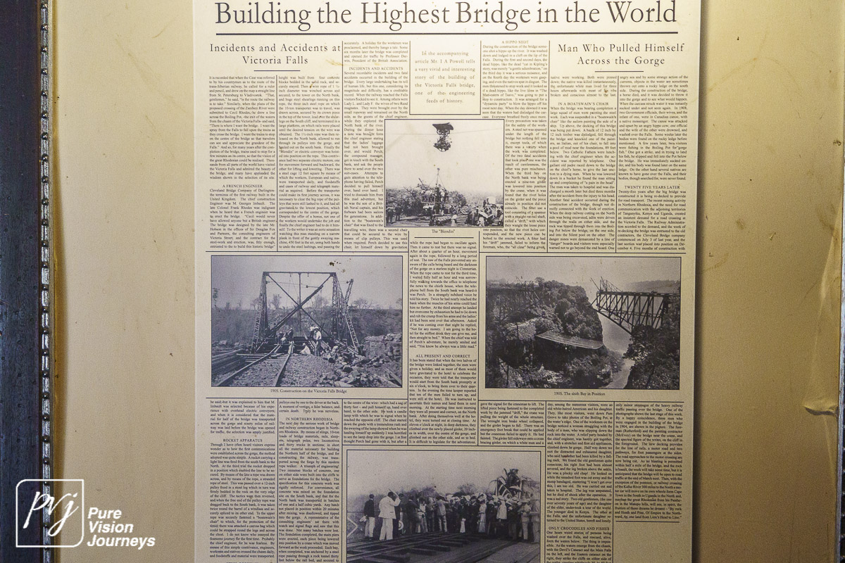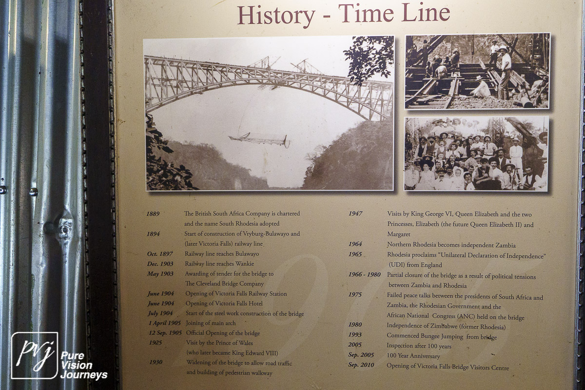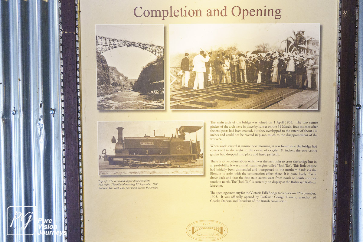 The Victoria Falls Bridge is an iconic construction built over the Zambezi River. The bridge is built over the Second Gorge close to the Falls and connects the two towns of Victoria Falls and Livingstone. The Zambezi River forms as the border between the countries of Zimbabwe and Zambia.